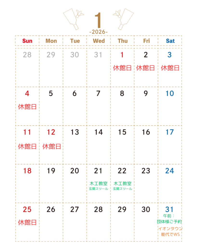 ☃️1月休館日・行事予定表☃️