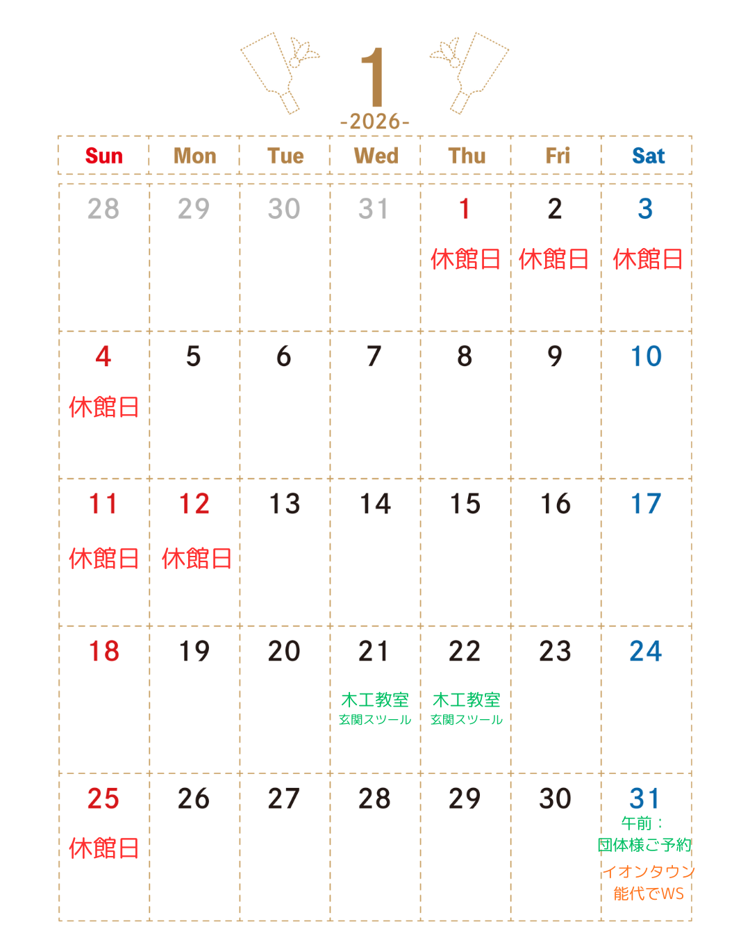 1月休館日・行事予定表